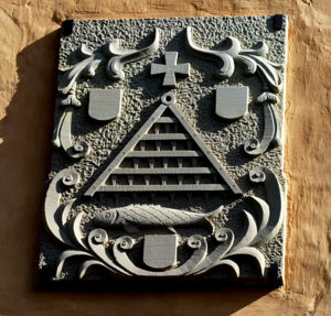 Sur la façade Ouest de la tour, apparaissent les armes de Guémar qui se définissent ainsi en langage héraldique : « De sinople à une herse sommée d’une croix pattée d’or et soutenue d’un poisson contourné d’argent, le tout accompagné de trois écussons d’or, deux en chef et un en pointe ».