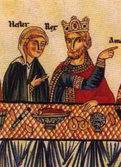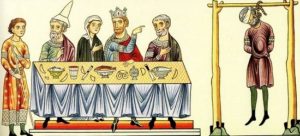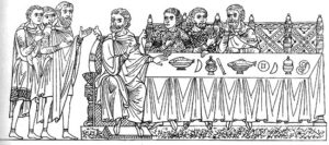 Pour peu que l’on fouille dans les document anciens on retrouvera le même chez Herrade de Landsberg. Il s’agit du fameux « Hortus Deliciarum », un manuscrit latin réalisé entre 1159et 1175 au couvent du mont Sainte-Odile par l’abbesse Herrade de Landsberg et ses moniales. Ce manuscrit offre une synthèse des connaissances théologiques et profanes de l’époque. Or dans plusieurs illustrations on aperçoit le bretzel parmi les mets offerts sur les tables de l’époque.