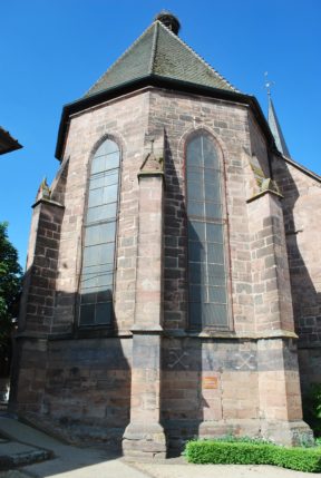 En arpentant la petite ville de Bergheim, je suis tombé sur un étrange décor peint sur la façade extérieure de l’église paroissiale de l’Assomption.