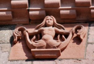 une sirène, un monstre de la mer avec une tête et une poitrine de femme, le reste corps étant celui d’un poisson.