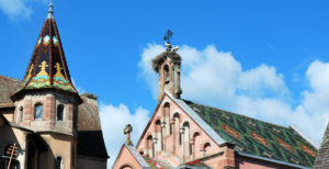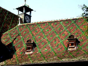 Les toits de l’ancien château des comtes d’Eguisheim ou encore celui l’église Saint-Georges à Chatenois offrent également une belle illustration de cet art médiéval.