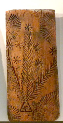 La tuile plate apparaît au XVe siècle. Quelques spécimens sont visibles au Musée Alsacien de Strasbourg. Certaines sont décorées de motifs religieux, de formes végétales ou animales. On peut y apercevoir divers monogrammes d’inspiration chrétienne.