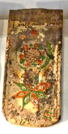 Les tuiles vernissées sont beaucoup plus rares. Au passage, il faut noter que certaines tuiles avaient la particularité suivante : la dernière tuile posée à la fin d’une journée de travail était appelée « Firowazigel » (tuile de fin de journée) recevait un décor particulier.