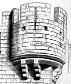 Les « échauguettes » de forme carrée ou cylindrique étaient placées aux angles des défenses principales. Elle étaient souvent couvertes et même munies de cheminées.