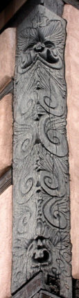 Sur certains poteaux corniers on trouve aussi des monstres grimaçants. Les thèmes sont d’une grande diversité : feuillages, représentations humaines ou mythologiques.