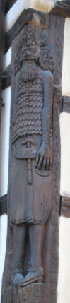 Quelquefois, le poteau cornier est sculpté et représente un personnage.