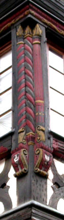 Le poteau cornier est non seulement une pièce maitresse de l’ossature des maisons alsaciennes, mais aussi un élément qui est l’objet de nombreuses décorations.