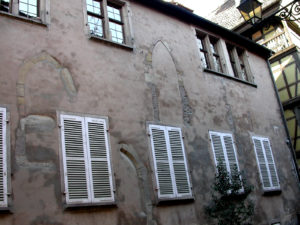 Si vous examinez la façade rue des Marchands, vous pourrez y discerner les traces (arc voutés) dans le mur.