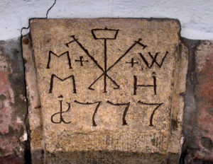 Tout évènement important dans un village se retrouvait finalement sur les façades des maisons pour rappeler le mariage de ses habitants, sous la forme d’une date accompagnée des initiales des époux ayant construit la maison.