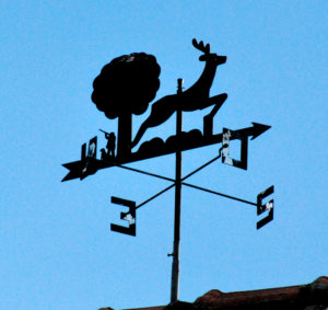 Au départ, ces girouettes étaient en bois, avant de devenir métalliques. Une girouette est une pièce rotative installée sur un axe vertical qui se positionne en fonction de la direction du vent.