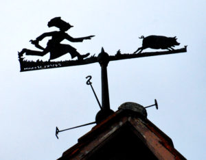 Enfin n’oublions par bien sûr rôle fonctionnel : indiquer la direction du vent. Elle sert également d’enseigne, avertissant le voyageur de la profession de l’occupant de la maison.