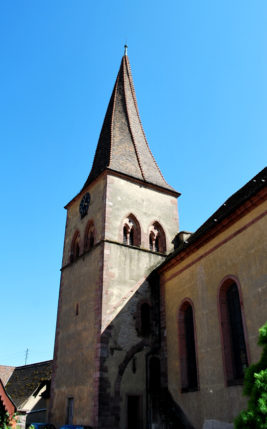 Si d’aventure au cours d’une de vos promenades vous passez par Niedermorschwihr, jetez donc un coup d’oeil sur l’église du village.