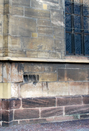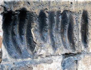Ainsi, si vous vous dirigez vers le chevet* de la Collégiale, vous ne manquerez pas de voir d’énormes griffures sur le mur Sud.