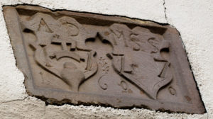 Entre ces deux symbole apparaissent aussi les initiales « E.G. ». Et au milieu de tout cela, le tailleur de pierre n’a pas manqué de rajouter sa signature avec les lettres « M.H. ». On peut encore lire la date « 1599 ».