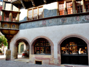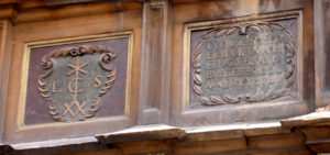 D’ailleurs, si vous examinez l’oriel d’angle, vous y découvrirez deux plaques sur lesquelles figurent d’une part les armoiries de la famille Scherer ainsi qu’un épigraphe.