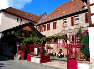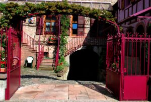 Puis jetez un coup d’œil au fond de la cour. La maison qui s’y trouve et dont la façade à subi un rajeunissement, constituait l’ancienne résidence des nobles de Hattstatt au XVIe siècle.