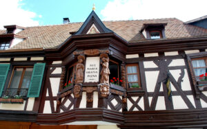 Elle ne ressemble à aucune autre avec son oriel en bois sculpté. De quoi s’agit-il ? Sans l’ombre d’un doute, d’une « annonciation ».