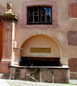Ainsi sur la petite fontaine placée dans une niche, devant l’élévation antérieure, vous pourrez lire une date gravée dans le grès en chiffre romains « ANNO MDLIX » qui traduite correspond à « 1559 ».