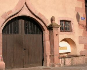 C’est ce même ruisseau qui ressort au pied de la première tour située à l’Est de la ville, sur la route de Bergheim.