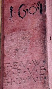 C’est au pied de ce poteau cornier, que vous trouverez cette pierre verticale d’angle comportant plusieurs inscriptions.