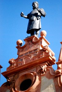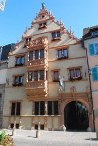 Ce personnage, un tonnelier, apparaît au-dessus du pignon d’une célèbre maison de Colmar. Sur le piédestal, sur lequel il se tient, on peut lire la date « 1609 ».
