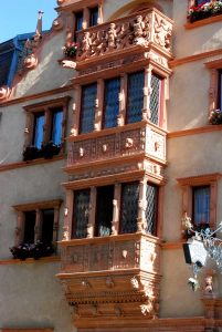 Cette maison aussi appelée « Maison des Têtes » en raison de nombreuses têtes grimaçantes qui ornent sa façade. Il y en a exactement 106. Vous pouvez vous amuser à les recompter.