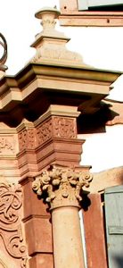 Une porte cochère de style Régence composée de deux colonnes corinthiennes permet d’accéder à une cour intérieure.